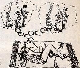 この時、宇宙空間に飛び出す気持ちて、身体を押し出す。マリナルコの「タイガーの騎士」たちは虎の毛皮の上に横たわりリラックスした虎の姿勢をとり、軽く眠気を導いた。ここが、重要なポイントである。完全に起きている状態では、変身をひき起こすための振動に至ることはむずかしい。