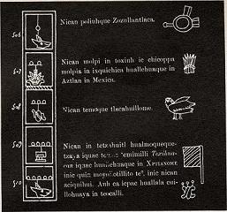 彼は、スペインのメキシコ征服直後、首都テノチテ ィトランの近くチャプリン丘付近を飛ぶワシの騎士たちをいまだ見ることのできた時代に、原住民から直接話をききながら、アステカの古文書のデータを収集したのである。